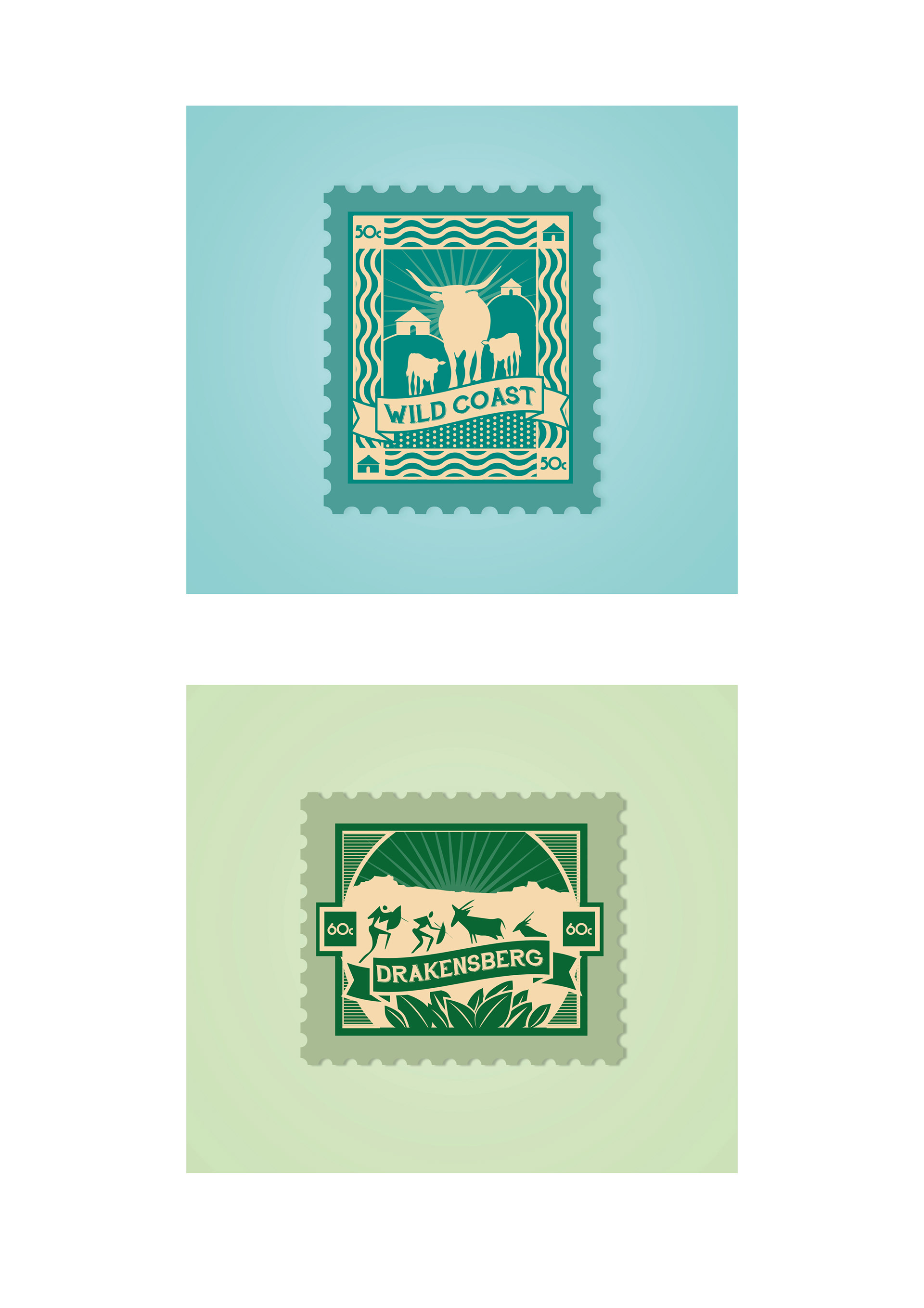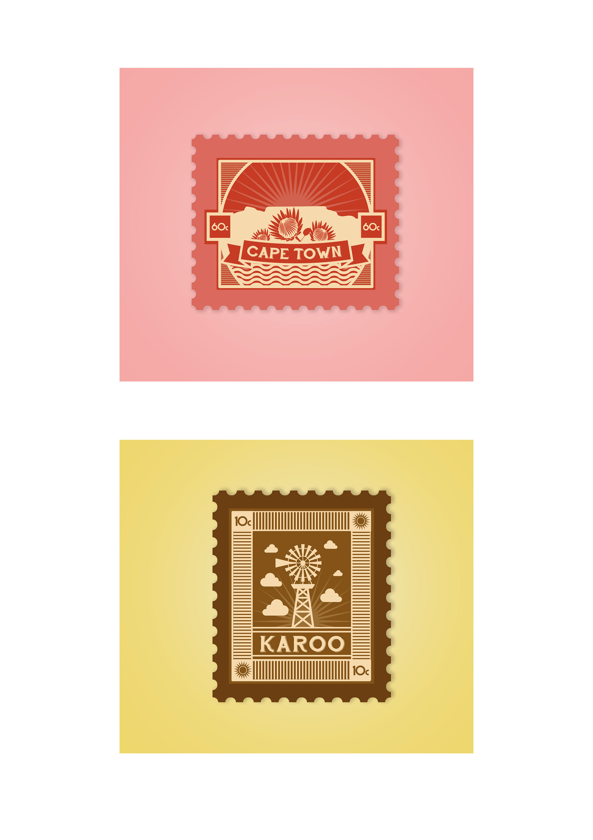 A collection of stamp designs inspired by iconic destinations in South Africa.